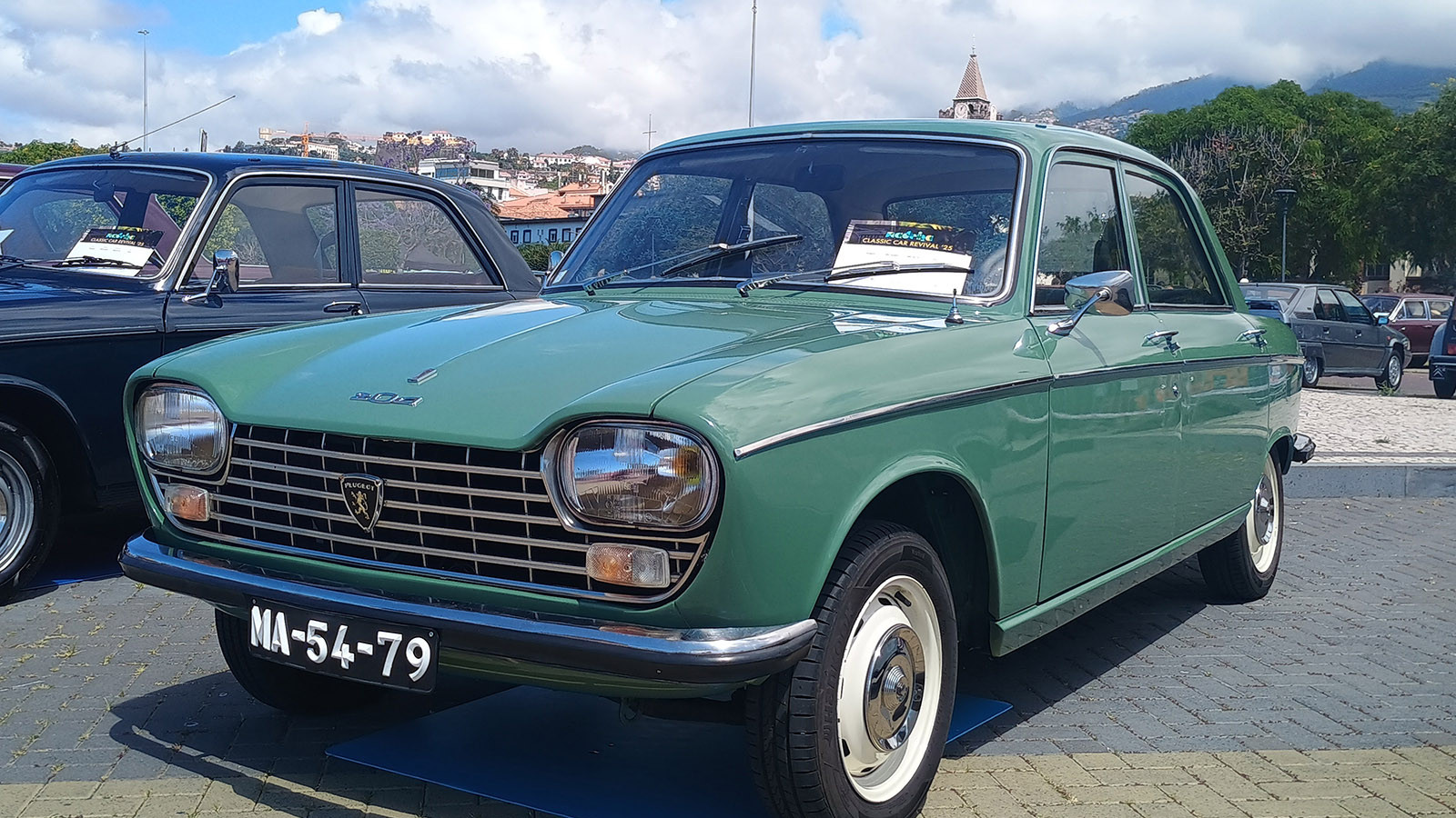 Parked near Peugeot’s first front-wheel-drive car, the 204, at the 2025 Madeira Classic Car Revival was its last rear-wheel-drive offering: the 505.