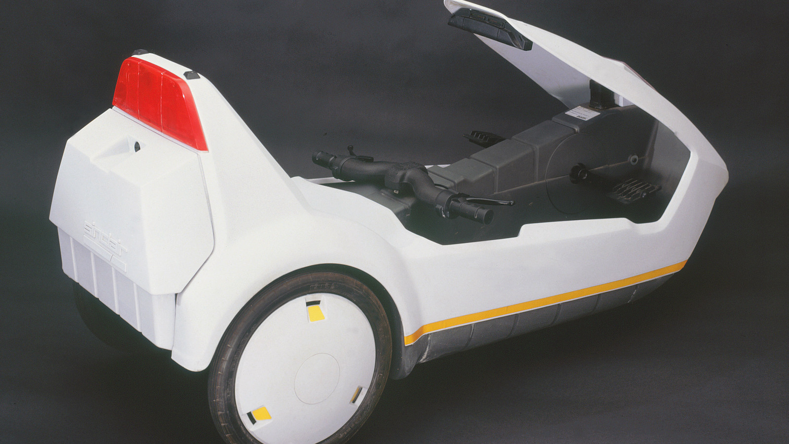 A milk float was probably the only electric-powered vehicle you’d see on the road, yet Sir Clive envisioned a future where we’d all be whipping about in smooth and silent electric commuter trikes.