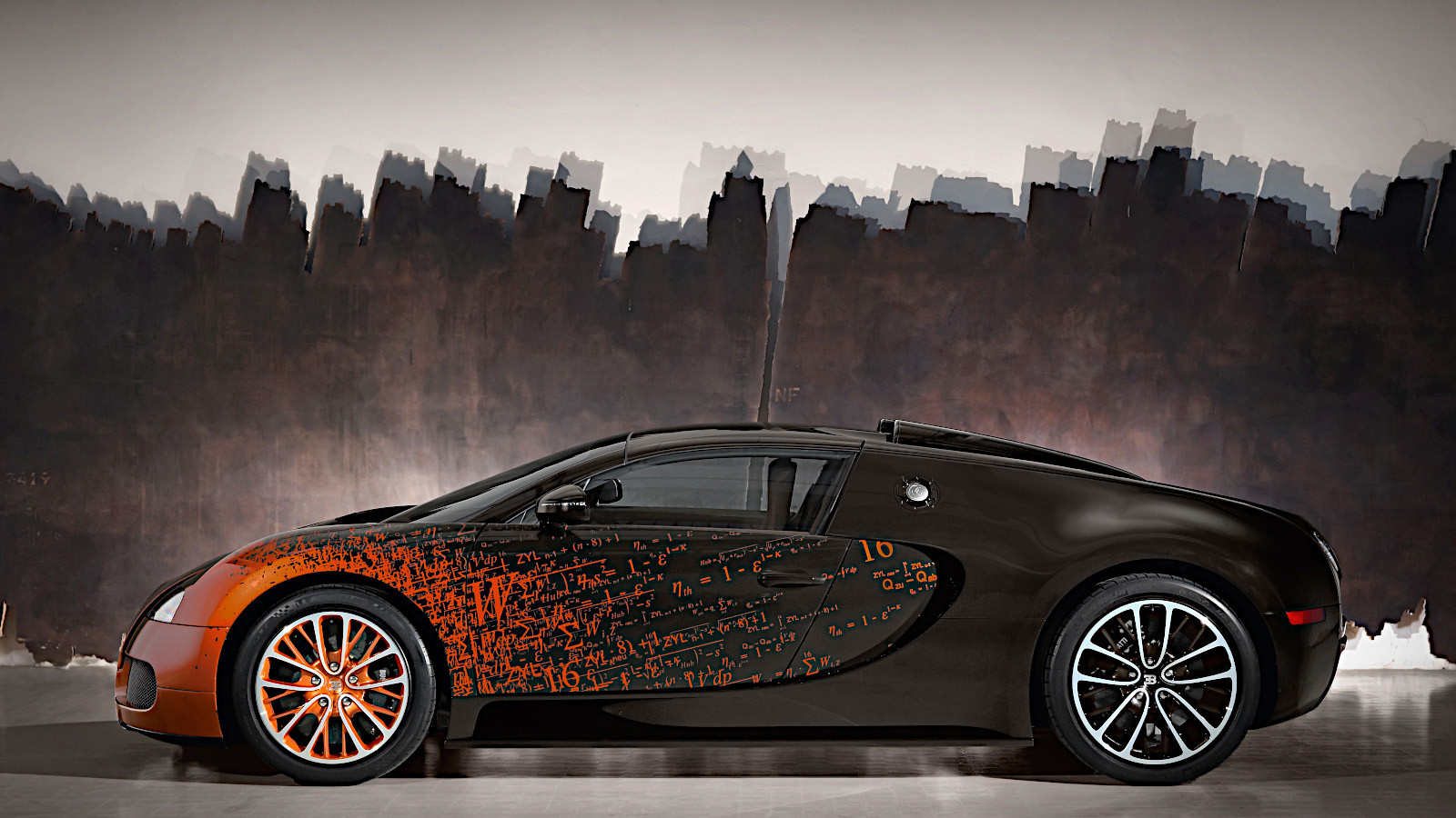 His design included many algebraic symbols, along with a prominent 16, representing the number of cylinders in the Veyron’s engine.