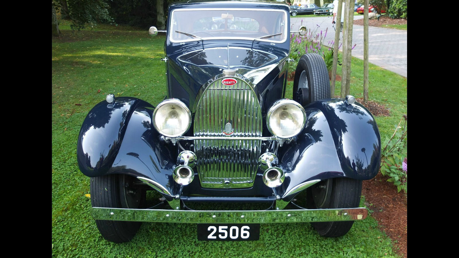 The Type 57 retained the flat grille design, although chromed, like that found on the Type 35.