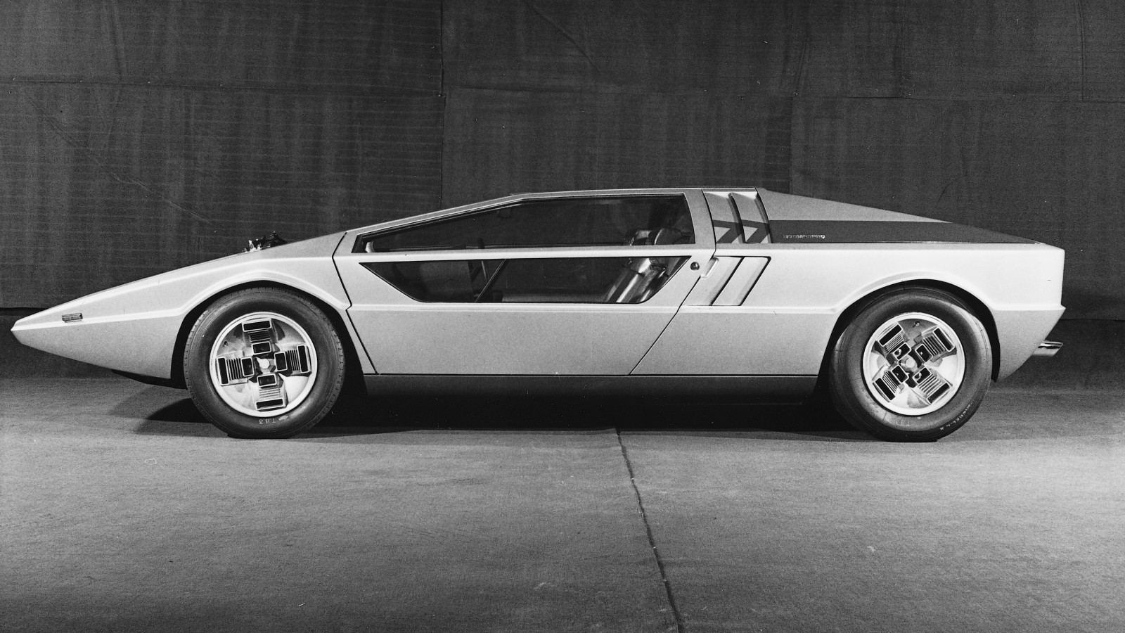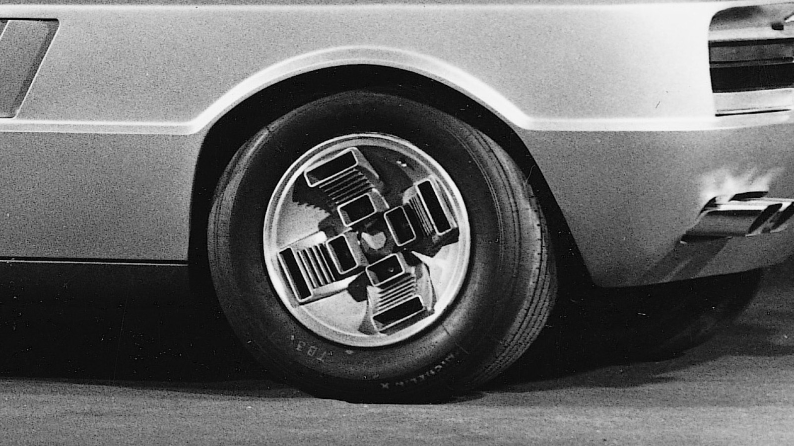Perhaps such a wedge-shaped car had to incorporate straight lines into its wheel design?