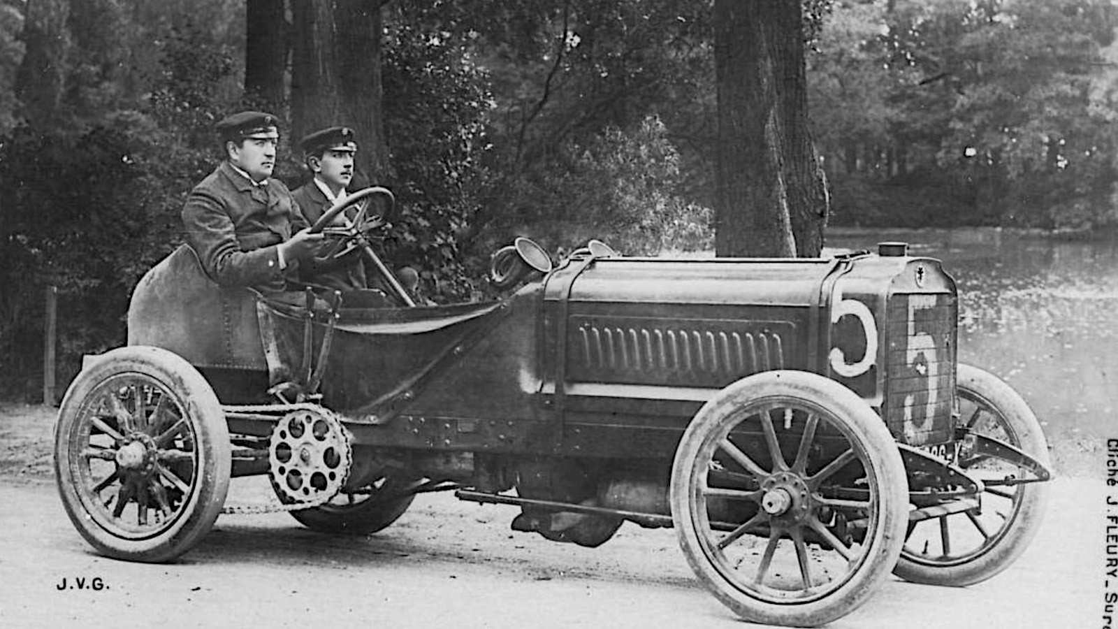 He was still in the lead at the end of lap two, with ‘Pierry’ (Pierre Huguet, pictured here) second and Jules Barillier seventh in the other two Panhards.