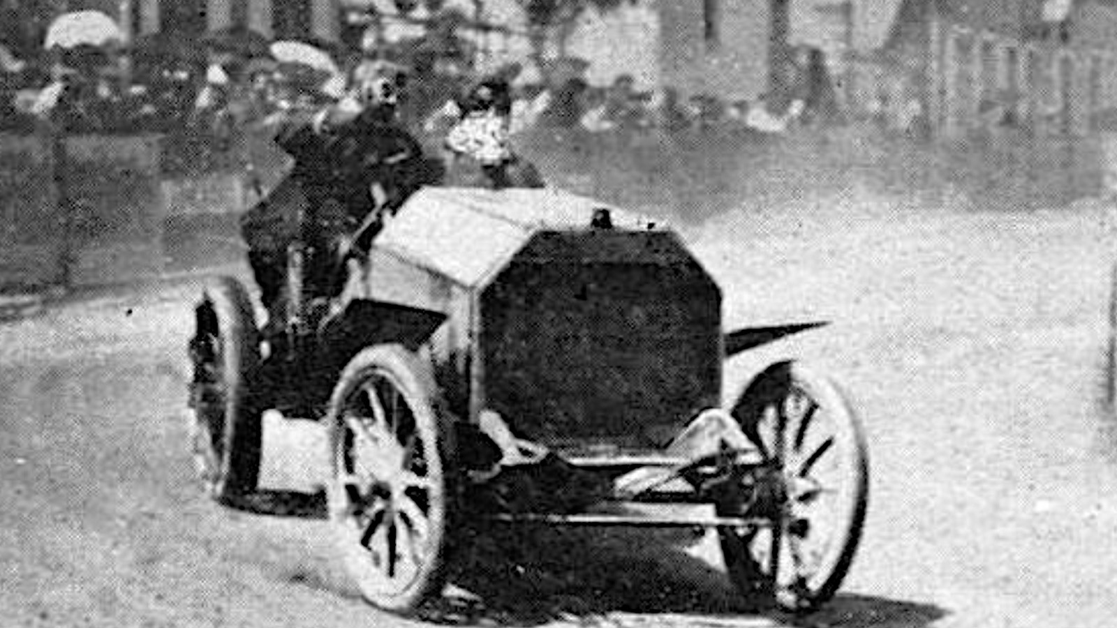 The team was hobbled by the lack of detachable rims, which led to Vincenzo Florio retiring on the first day and ruined any chances Camille Jenatzy/Joseph Alexander Burton (the latter driving on day two because Jenatzy’s eyes had been damaged by dust) and Gabriel Mariaux (pictured) might have had of achieving good results.