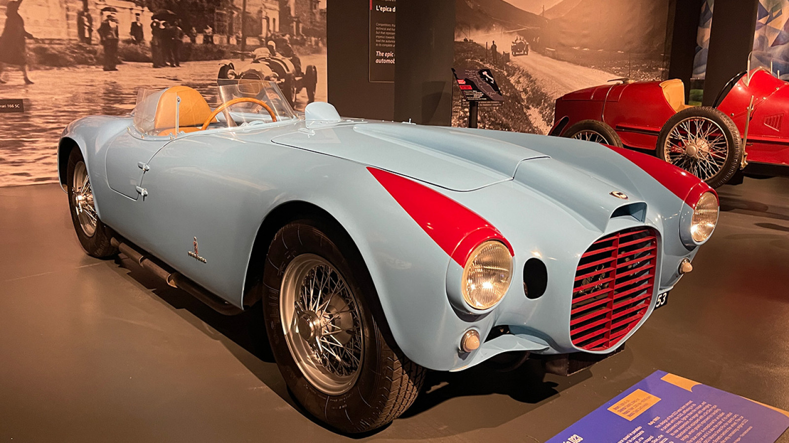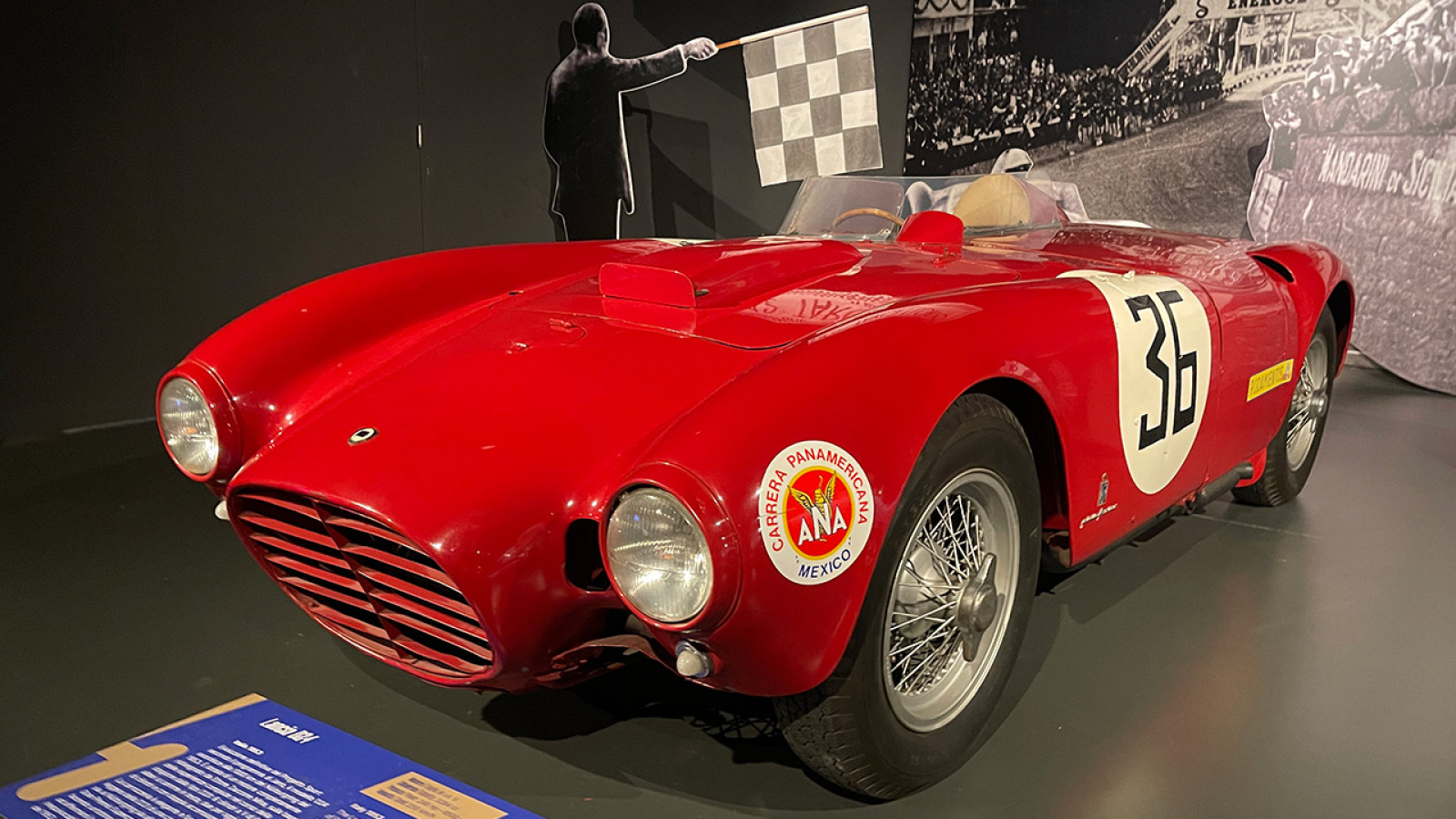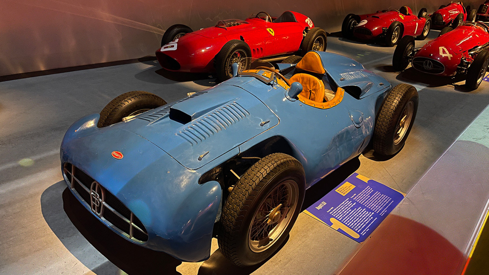 In the background and to the left you can see Mike Hawthorn’s Formula One championship-winning Ferrari 246, which was restored in a collaboration between the museum and Ferrari.