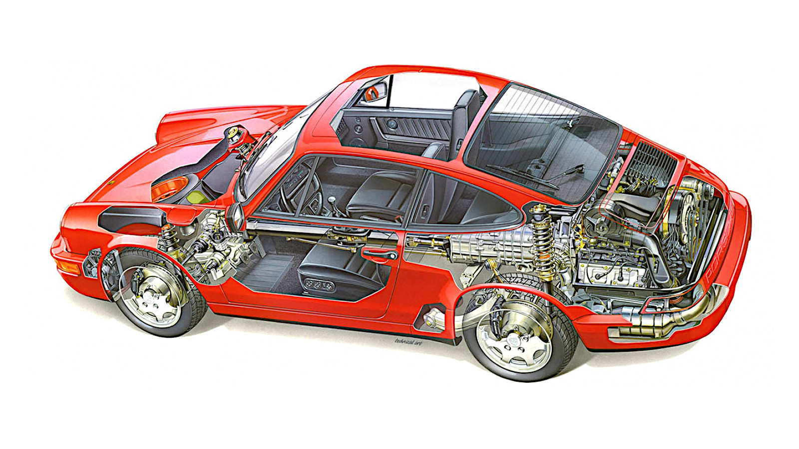 This included the engine. The 964 unit was still a flat-six, of course, but it now measured 3.6 litres and produced around 250bhp.