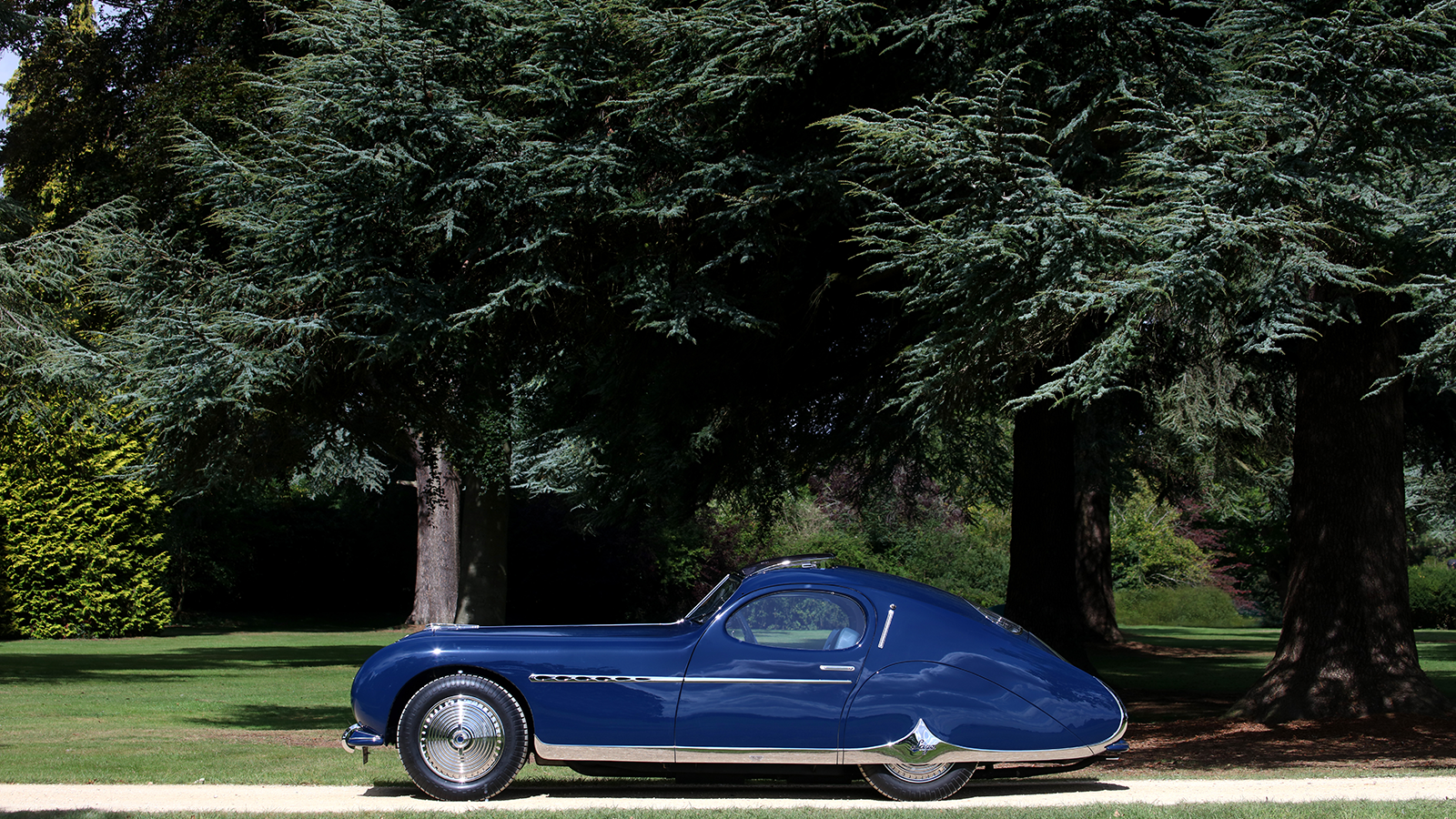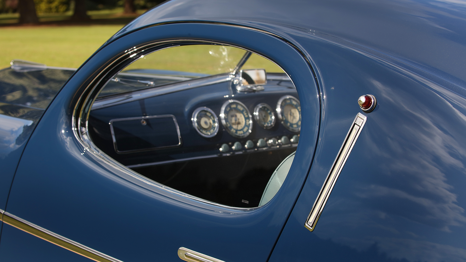 However, the rest of this Talbot-Lago’s styling has the bold signature of Figoni, including the goutte d’eau (teardrop) window shape.