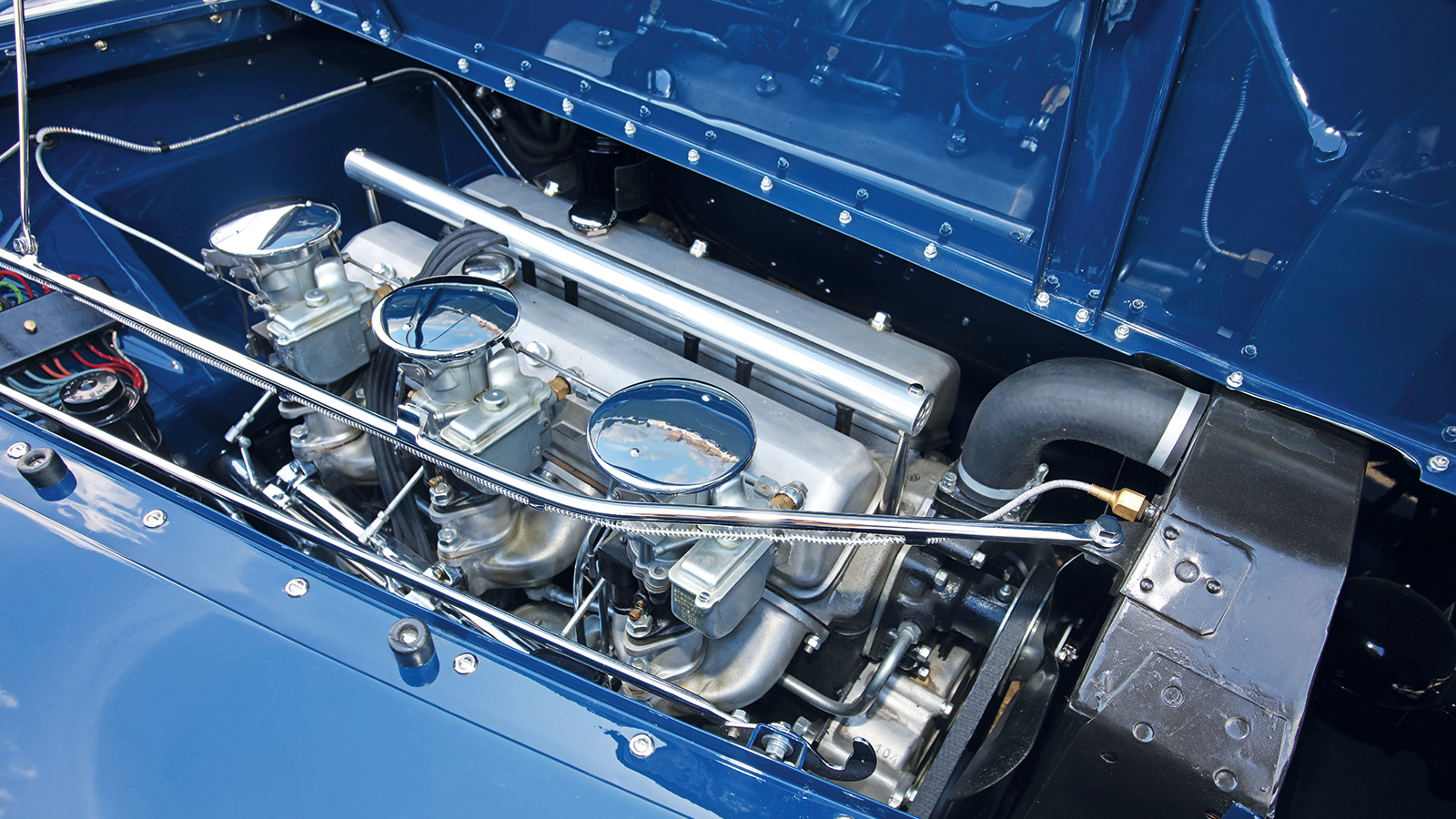 “Although the body colour had been stripped in America, we found areas of the original paint under hinges,” says Kudela. “From this we were able to match and mix the correct blue.”