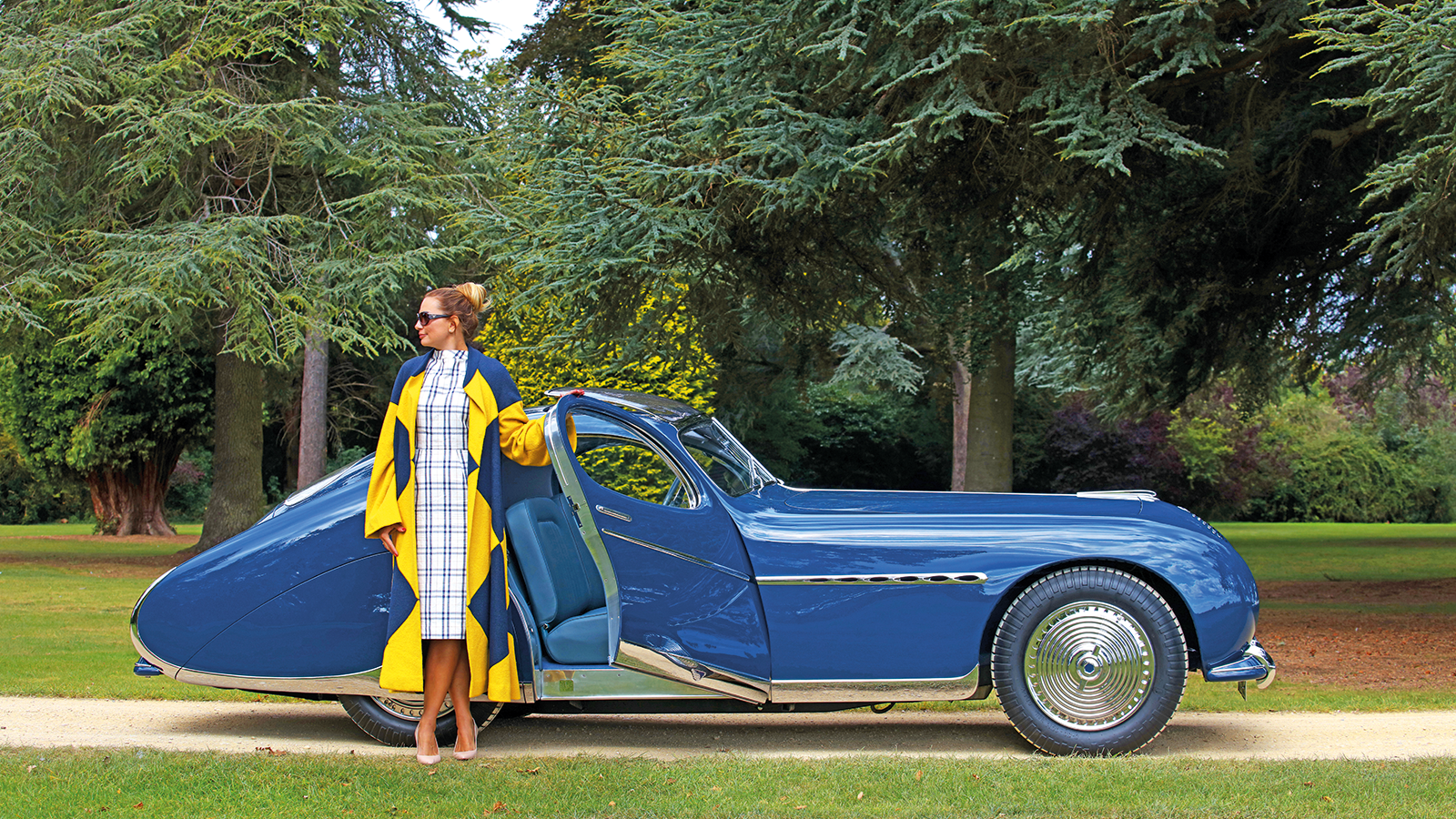 The final touch for the car’s Pebble Beach debut was to recreate the distinctive Dior coat, as featured in the 1949 fashion shoot outside the Figoni works at Rue de L’Église in Boulogne-sur-Seine.